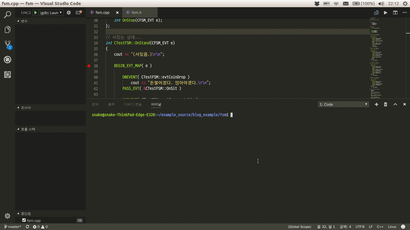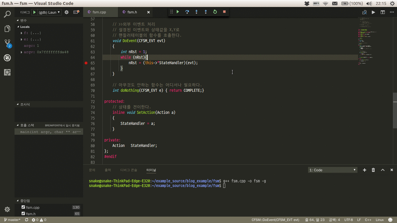 그러므로 fsm.h를 include하고 CFSM을 상속받아 처리하면된다.