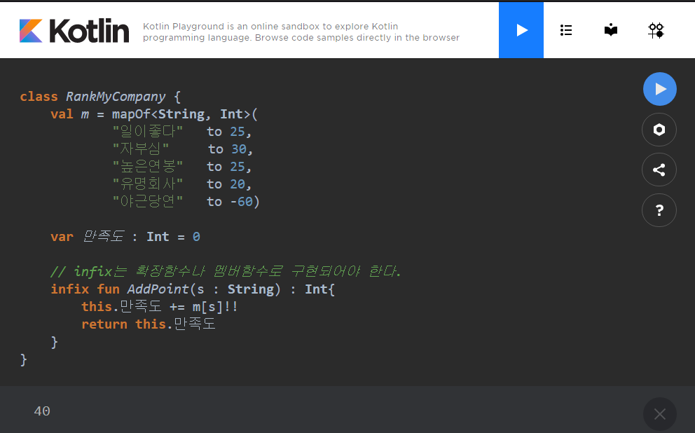 [kotlin] infix 함수 예제 본문