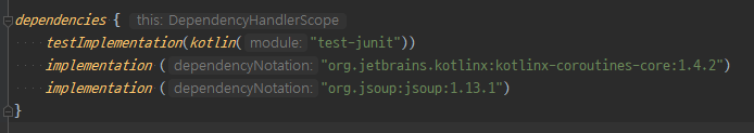 implementation ("org.jsoup:jsoup:1.13.1")