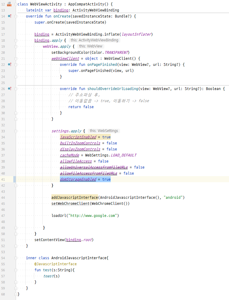 2. settings에서 domStorageEnabled를 true로 설정했는가?