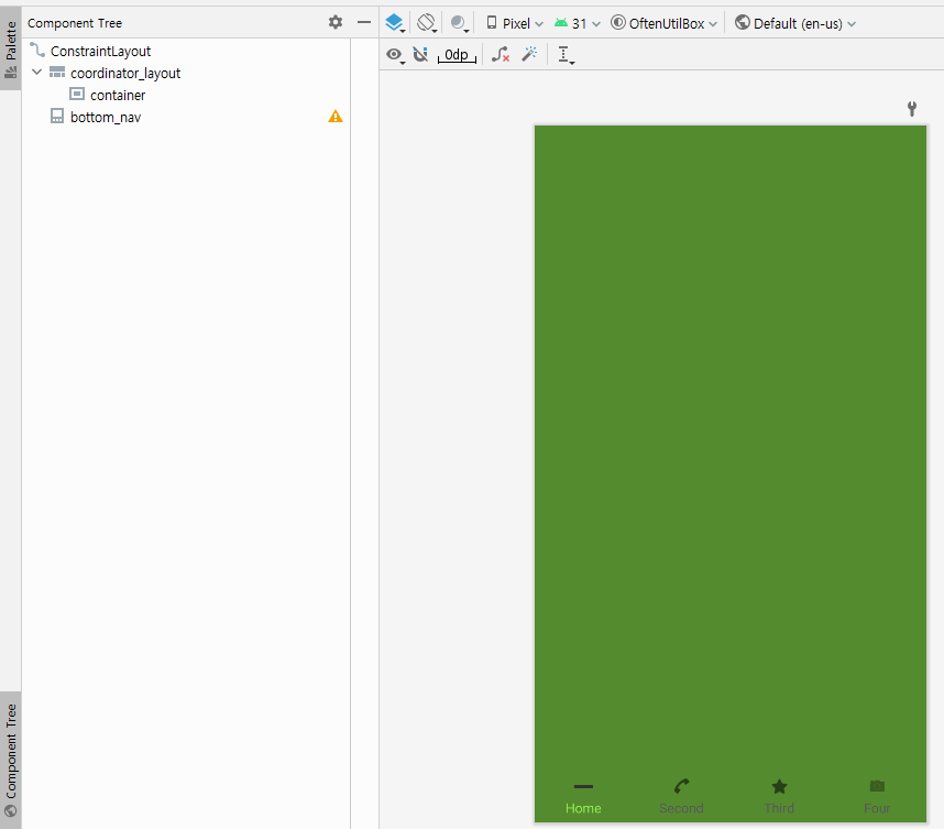 Fragment를 대체할 XML내의 위젯을 배치한다. 이를 설명할 때, FrameLayout를 사용한 예제가 많은 편이다.