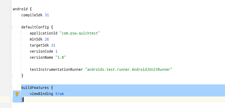 Activity에서 viewBinding을 사용하기 위해서 다음과 같이 gradle에 설정을 한다.