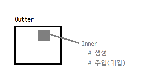// DI(Dependency Injection)는 클래스 내에 사용하는 내부 클래스를 외부에서 생성하고 주입할 경우 사용하는 패턴이다.