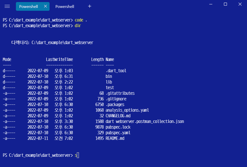 dart 웹서버를 구현하기 위해서 shelf를 사용한다. 그리고 클라이언트 테스트를 위해 dio를 사용한다.