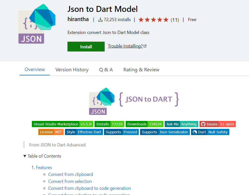 Json to Dart Model - Visual Studio Marketplace