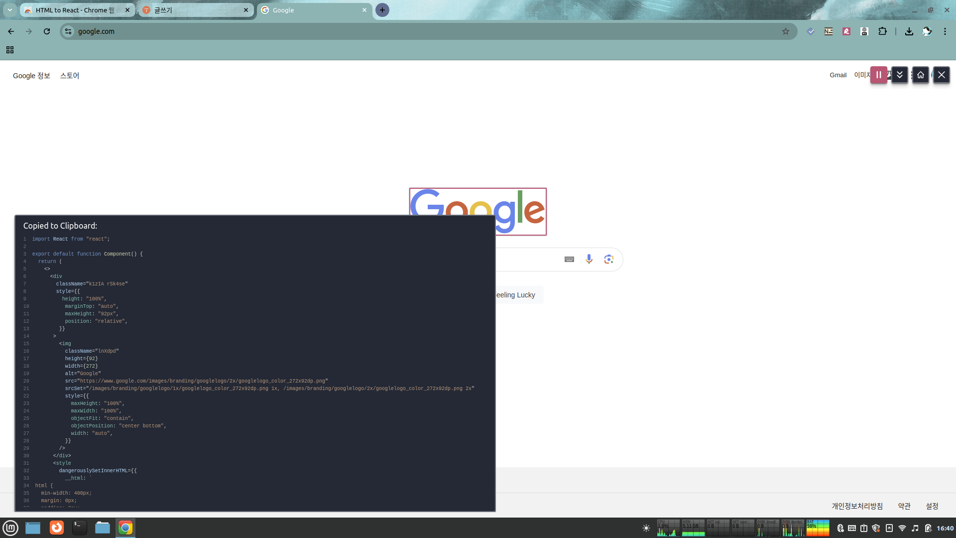 3. 약간의 시간이 흐른 후, React Component 소스가 클립보드로 복사
