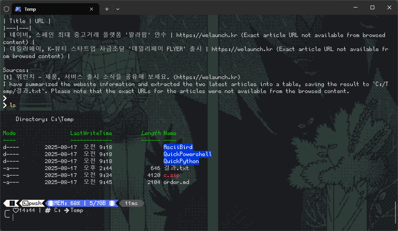 | [gemini-cli] pipe(wmic)를 이용한 하드웨어 정보처리 (0) | 2025.09.06 |