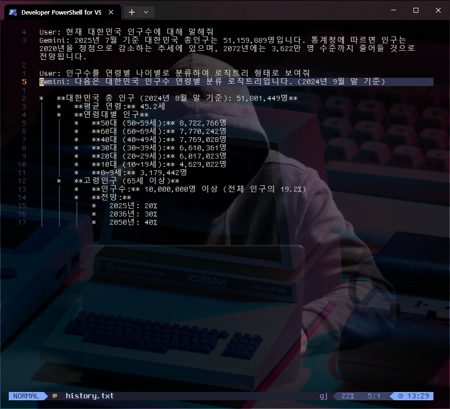 AI를 통한 검색이 목적이라면 gemini-cli는 그다지 매력적이지 않다. 그러나 "AI를 통한 자동화"가 목적이라면 gemini-cli는 현존 최고의 솔루션임이 분명하다. 가장 대표적인 이유는 UX가 cli 환경이라는 점이다. 비개발자 입장에서는 cli의 중요성을 이해 못하겠지만 개발 또는 자동화 환경에서는 cli를 통한 쉘 프로그래밍은 장점이 무궁무진하다. 그렇기 때문에 자신의 [PC의 프로그램 + AI]의 조합을 쉽게 만들고자 한다면 CLI 환경에서 쉘 프로그래밍(IPC- Inter process Comunication)은 상당한 편의성을 제공한다.