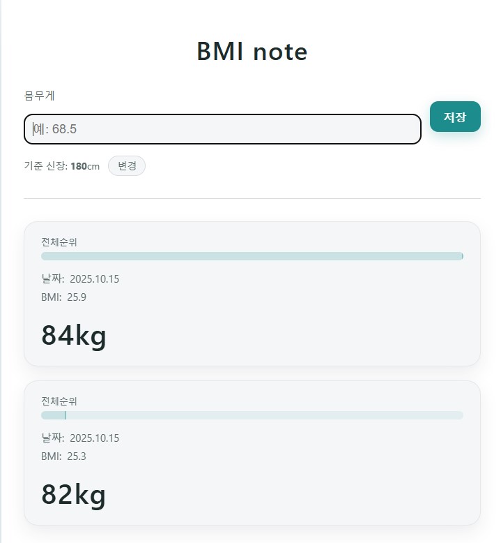 목적: BMI를 기록하는 웹앱을 HTML과 Javascript로 만든다.