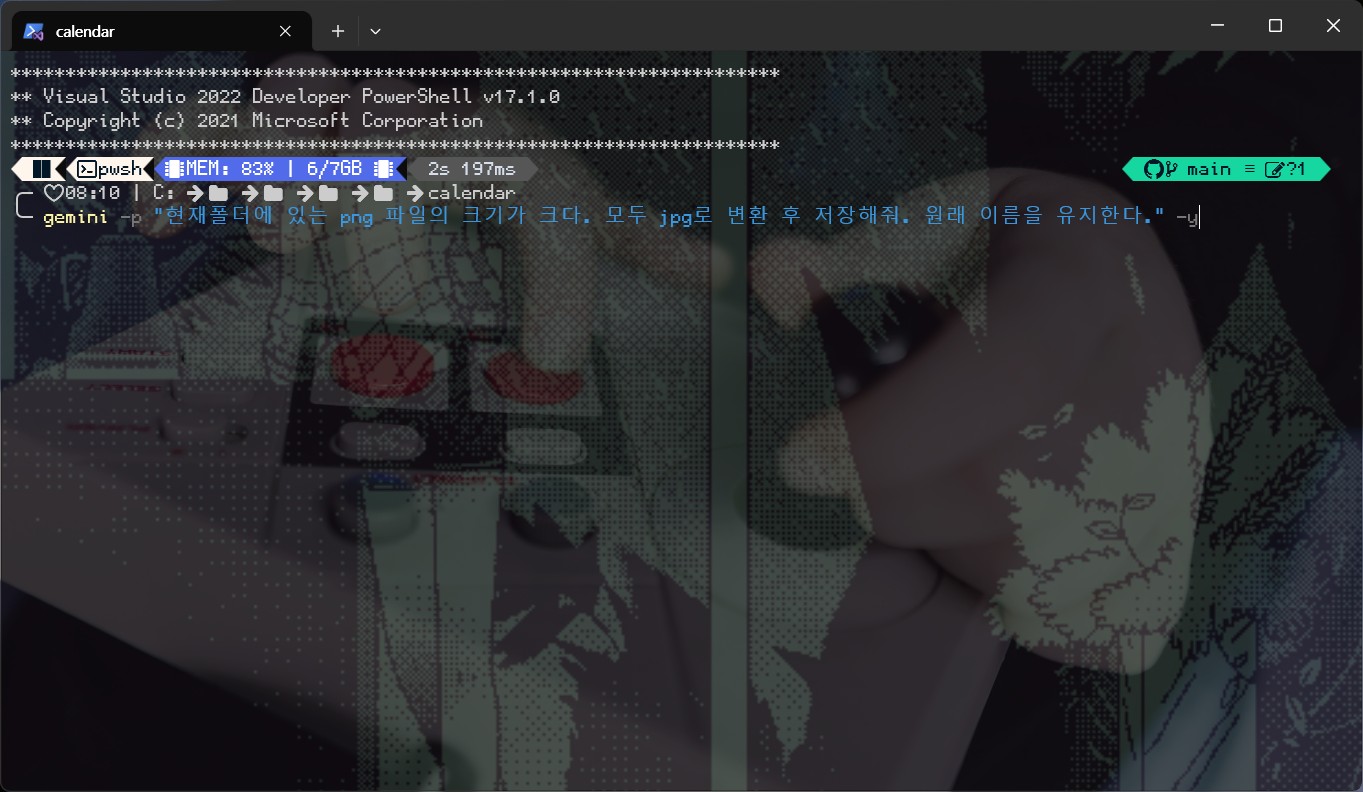 파일용량 크기문제로 png를 jpg로 바꿀 경우가 종종 발생한다. 이때 gemini-cli를 활용하면 쉽게 해결할 수 있다.