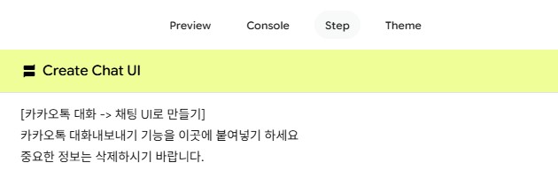 우측 상단에 Preview, Console, Step, Theme의 탭이 존재한다.