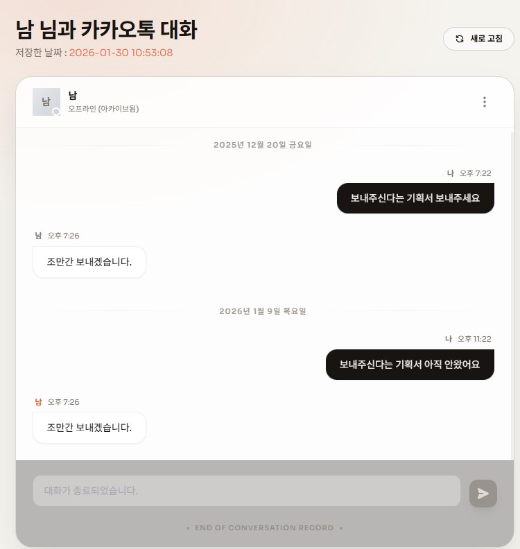 카카오톡 대화내보내기 기능을 이곳에 붙여넣기 하세요