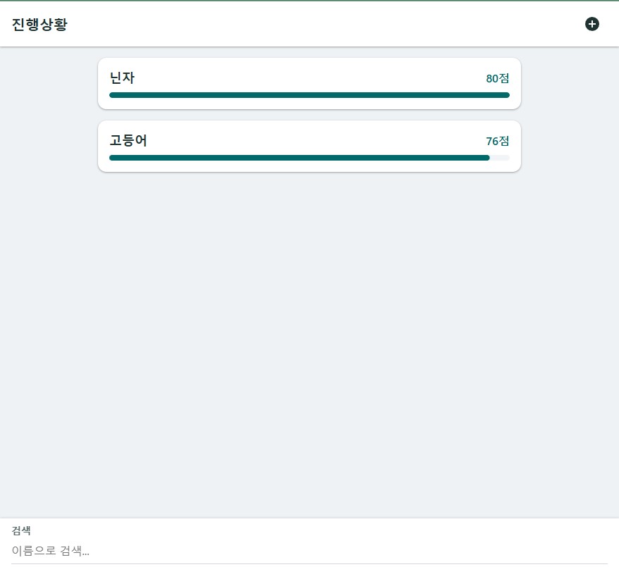 리스트는 카드뷰 형식으로 이름, 점수, progress를 보여준다.