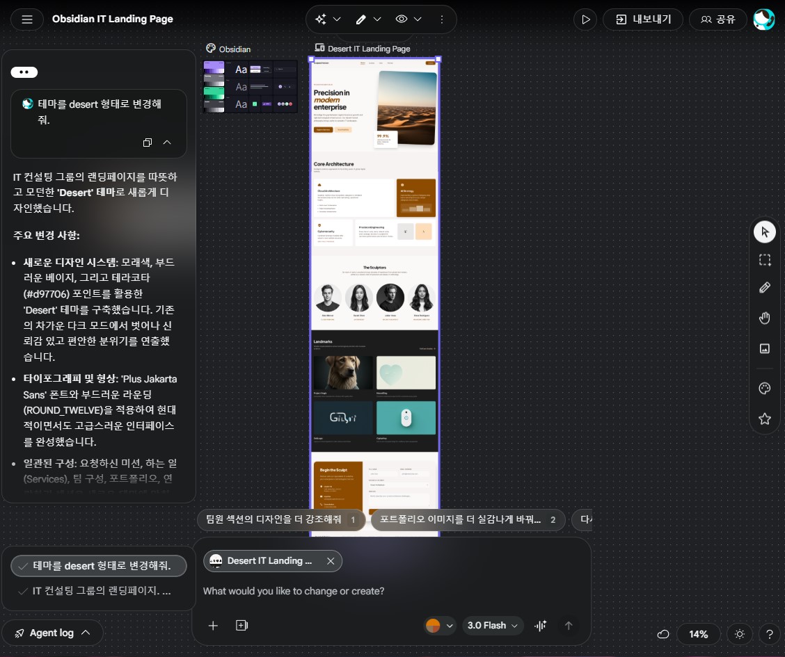 선택된 디자인 항목의 테마도 프롬프트로 쉽게 재작업이 가능하다.