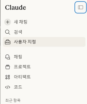 - 클로드의 좌측 메뉴에서